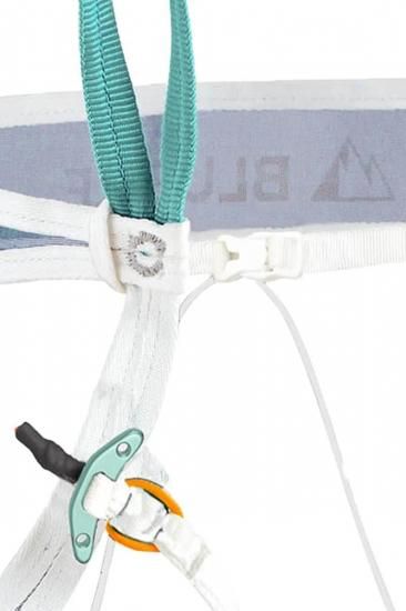 ハンギング時の快適性は、パットのベルトや幅で決まるのではなく、荷重の分散性が重要で、腰に30%腿に70%が適切な配分と考え、ビレイループが引かれる角度の延長線上にレッグループが来るよう配置することで、非常に快適なハンギング性能を実現。